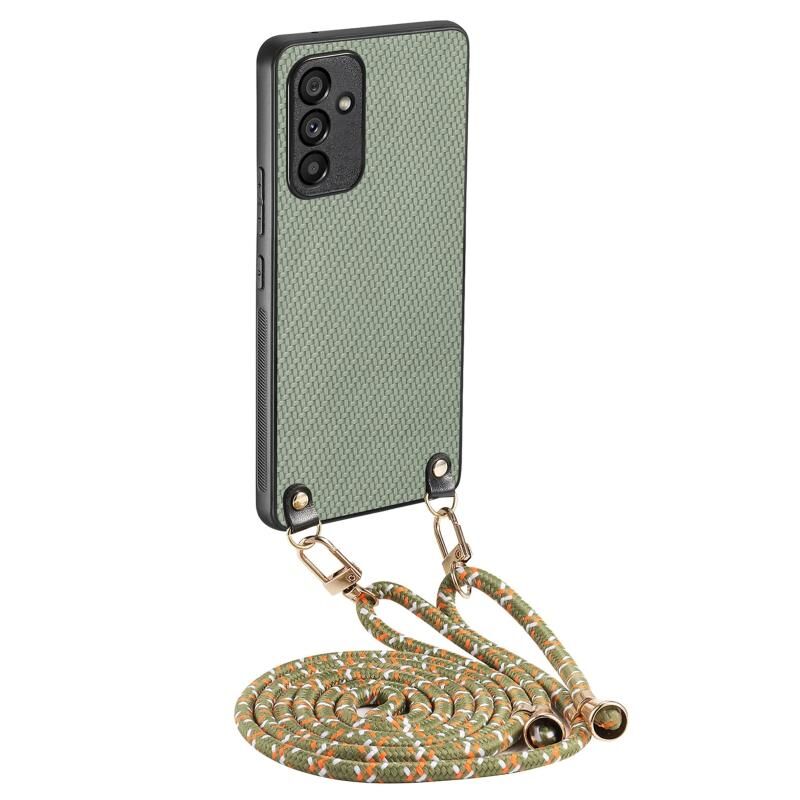 Για Samsung Galaxy S24+ 5G Carbon Fiber Texture δέρμα πίσω κάλυμμα τηλέφωνο υπόθεση με λουράκι σταυρού (πράσινο)