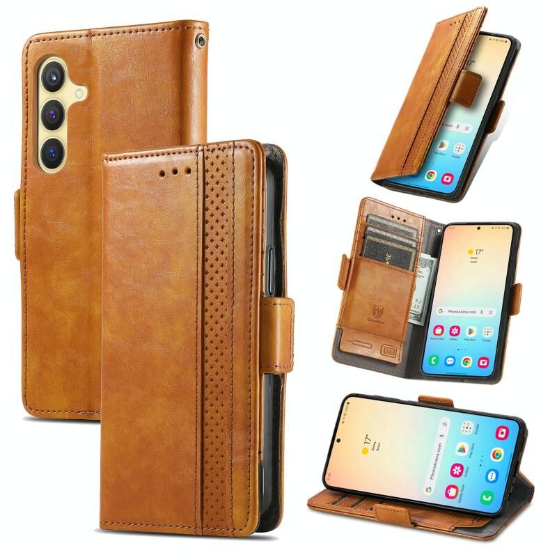 Για Samsung Galaxy S24+ 5G CaseNeo Splicing Διπλή μαγνητική πόρπη δερμάτινη θήκη τηλεφώνου (χακί)
