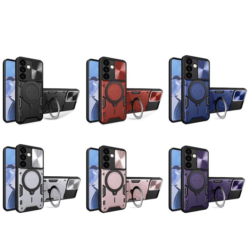 Θήκη κινητού τηλεφώνου Samsung Galaxy S24+ 5G με υφή CD, συρόμενο προστατευτικό κάμερας και μαγνητική βάση (Μπλε)