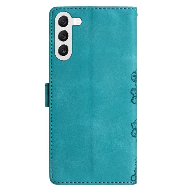 Θήκη τηλεφώνου Samsung Galaxy S24+ 5G Cherry Blossom Butterfly με ανάγλυφη υφή PU (πράσινο)