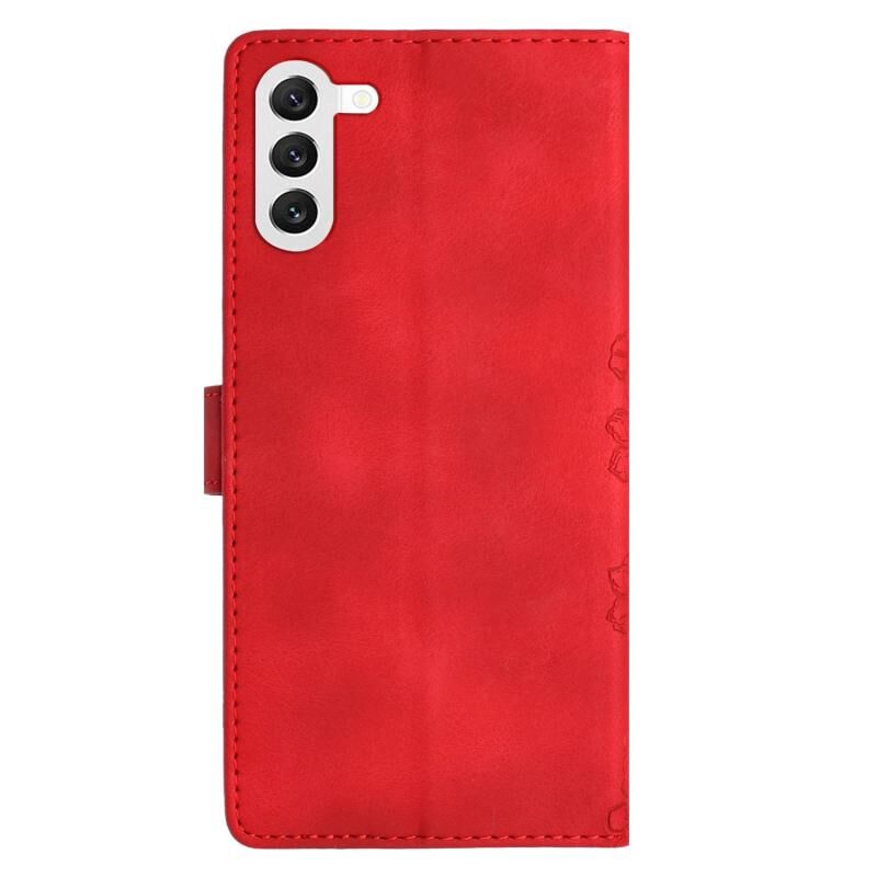 Θήκη τηλεφώνου Samsung Galaxy S24 5G Cherry Blossom Butterfly με ανάγλυφο PU υλικό αίσθησης δέρματος (Κόκκινο)