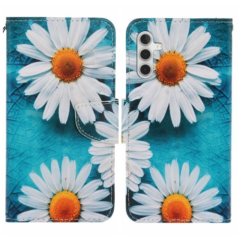 Θήκη τηλεφώνου Samsung Galaxy S24 5G από δέρμα με πολύχρωμο σχέδιο (Μαργαρίτα)