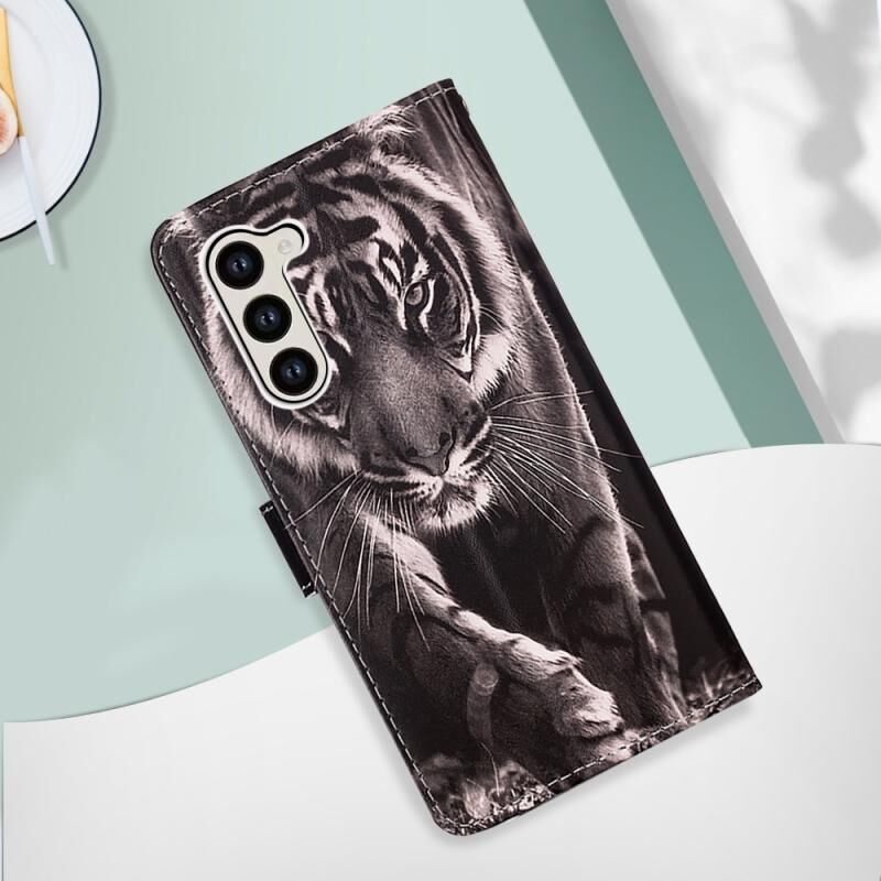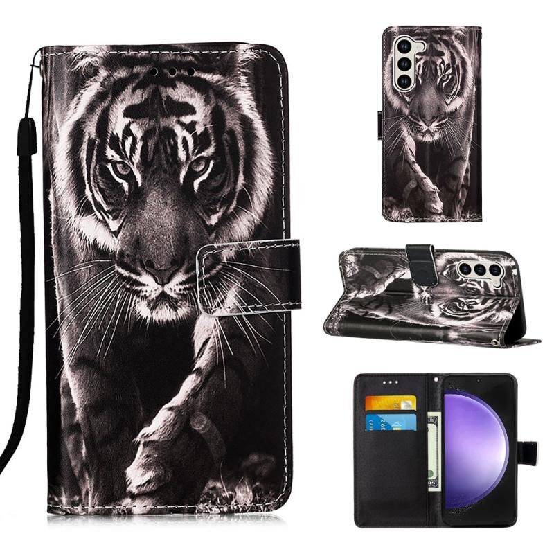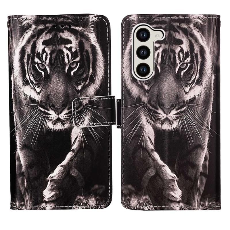 Θήκη τηλεφώνου Samsung Galaxy S24 5G από δέρμα με απλή ύφανση, πολύχρωμο σχέδιο (τίγρης ασπρόμαυρη).
