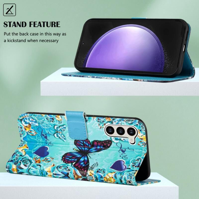 Θήκη τηλεφώνου Samsung Galaxy S24 5G από δέρμα με απλή ύφανση και πολύχρωμο σχέδιο (Χαριτωμένη Πεταλούδα)