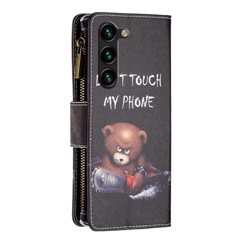 Θήκη τηλεφώνου Samsung Galaxy S24+ 5G από δέρμα με φερμουάρ και πολύχρωμο σχέδιο (Αρκούδα)