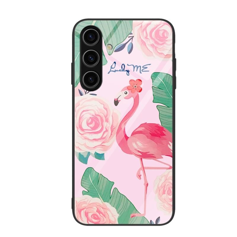 Θήκη τηλεφώνου από χρωματιστό ζωγραφιστό γυαλί για Samsung Galaxy S24+ 5G (Φλαμίνγκο)