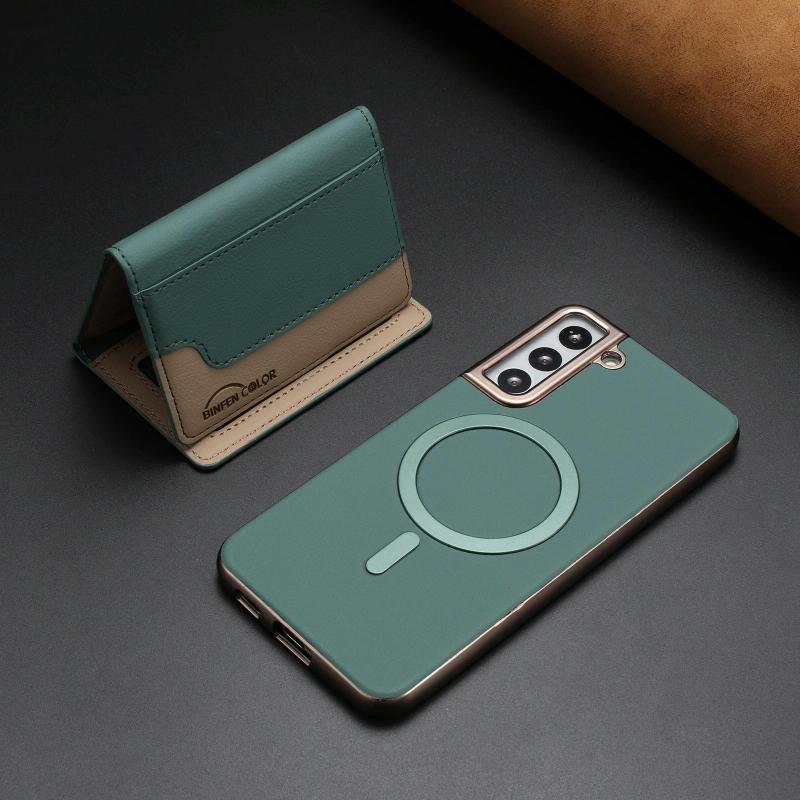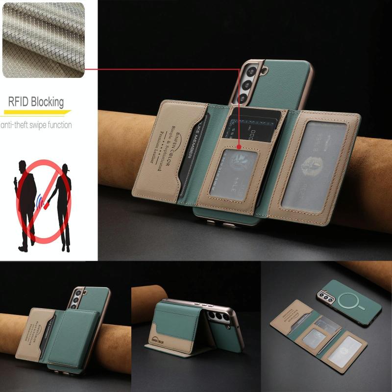 For Samsung Galaxy S24 5G Colour Matching Horizontal Magnetic Card Bag RFID MagSafe Phone Case(Green)
