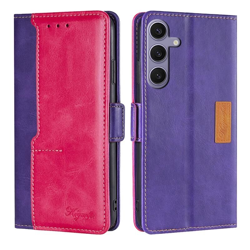 Για Samsung Galaxy S24 + 5G αντίθεση χρώμα πλευρά πόρπη δερμάτινη θήκη τηλεφώνου (μωβ + Rose Red)