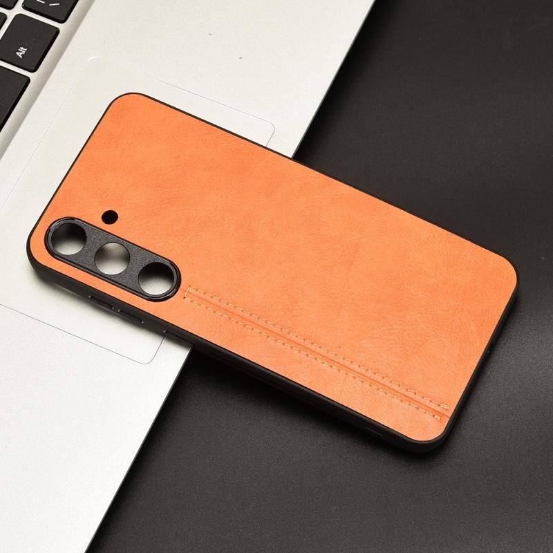 Για Samsung Galaxy S24 5G Αγελάδα μοτίβο ραπτικής πίσω κάλυμμα τηλέφωνο υπόθεση (πορτοκαλί)