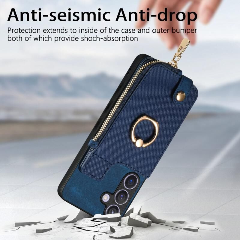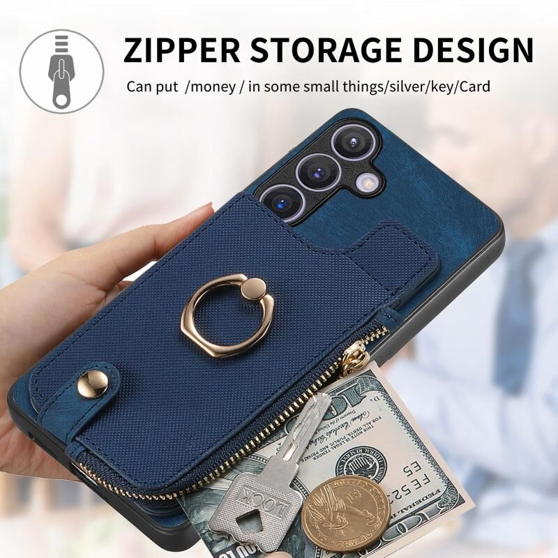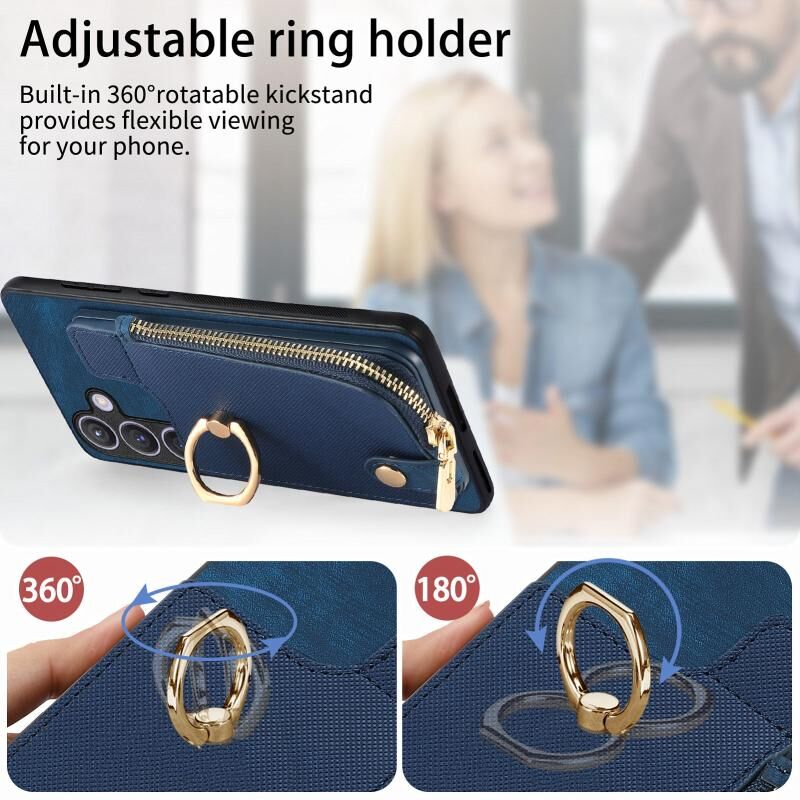 Για Samsung Galaxy S24 + 5G Cross Δερμάτινο δαχτυλίδι κάθετη φερμουάρ πορτοφόλι πίσω υπόθεση τηλεφώνου (μπλε)