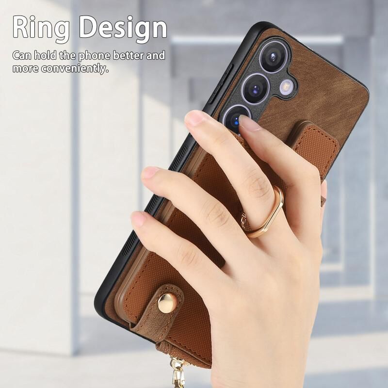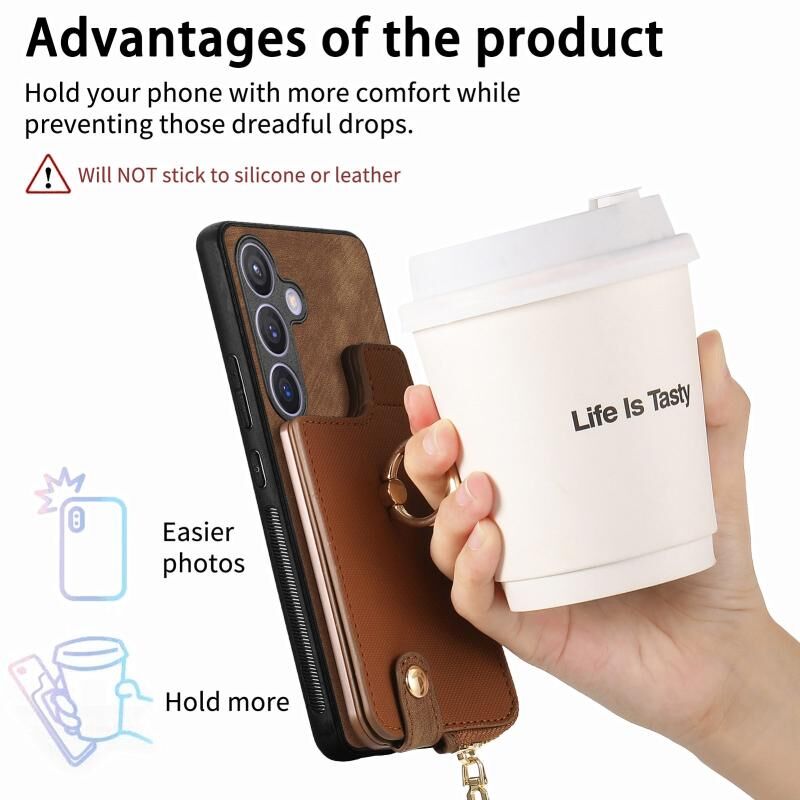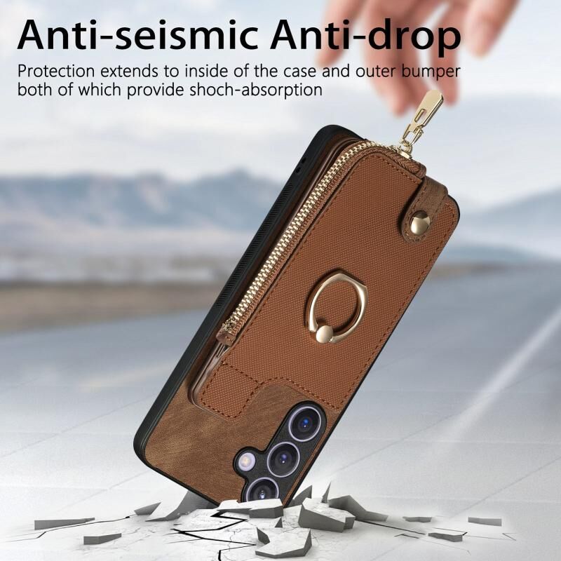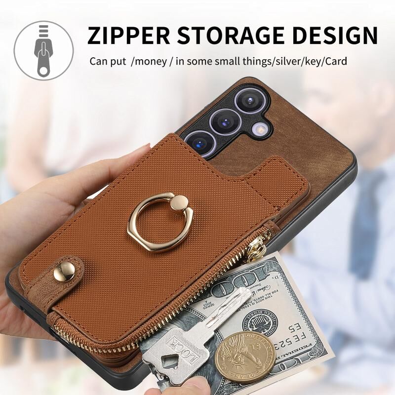 Για Samsung Galaxy S24+ 5G Cross Δερμάτινο δαχτυλίδι κάθετη φερμουάρ πορτοφόλι πίσω υπόθεση τηλεφώνου (καφέ)