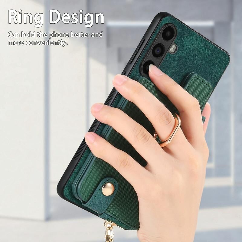 Για Samsung Galaxy S24 + 5G Cross Δερμάτινο δαχτυλίδι κάθετη φερμουάρ πορτοφόλι πίσω υπόθεση τηλεφώνου (πράσινο)
