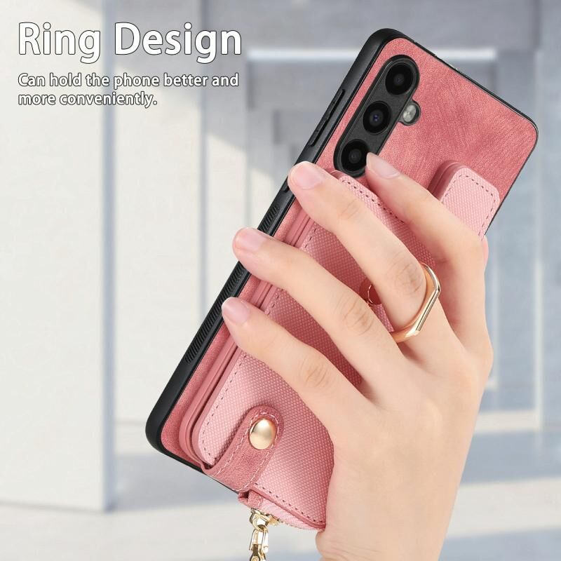 Για Samsung Galaxy S24+ 5G Cross Δερμάτινο δαχτυλίδι κάθετη φερμουάρ πορτοφόλι πίσω υπόθεση τηλεφώνου (ροζ)