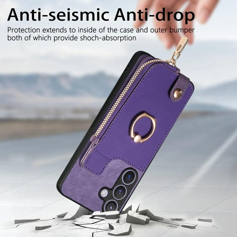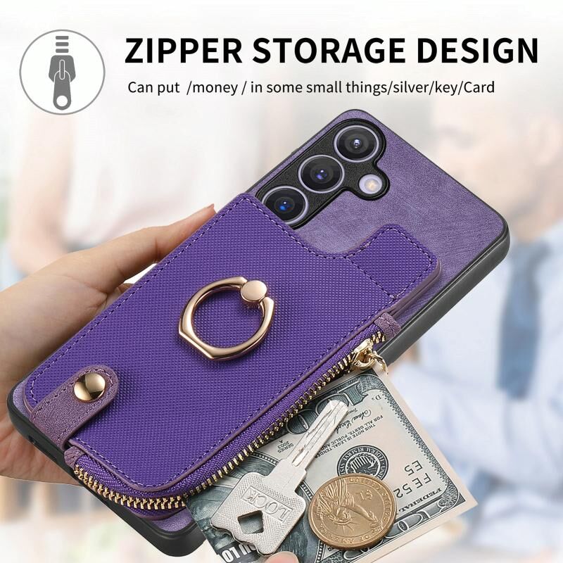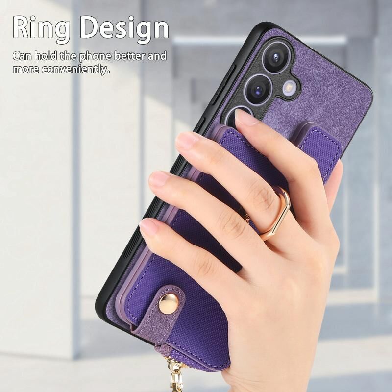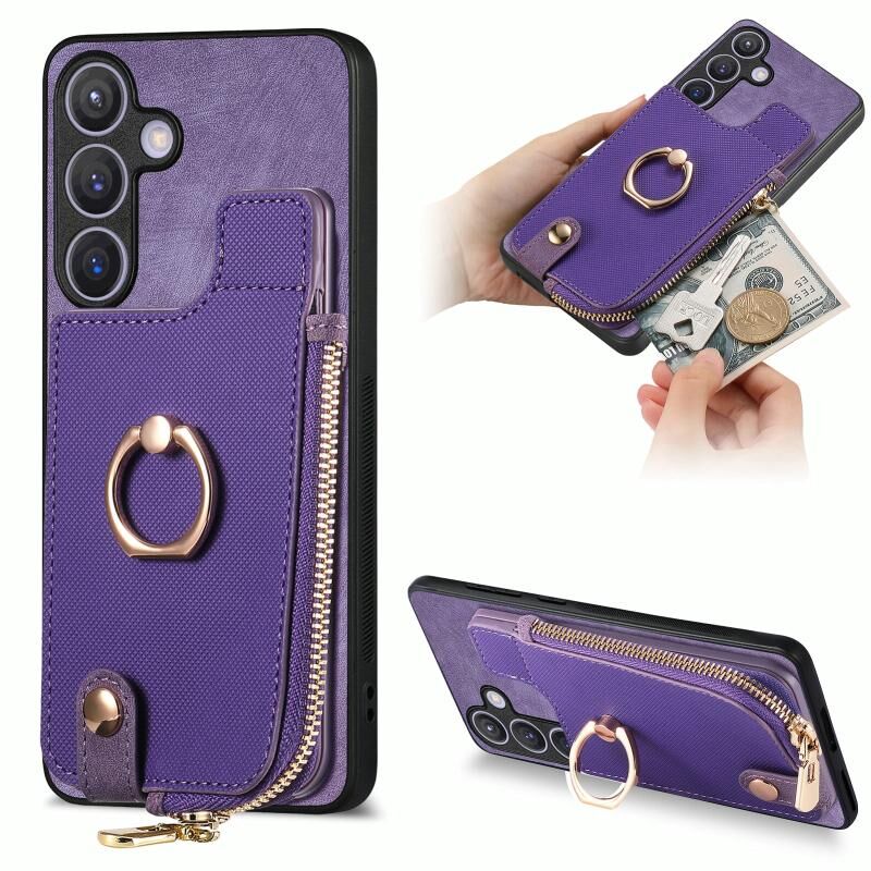 Για Samsung Galaxy S24 + 5G Cross Δερμάτινο δαχτυλίδι κάθετη φερμουάρ πορτοφόλι πίσω υπόθεση τηλεφώνου (μωβ)