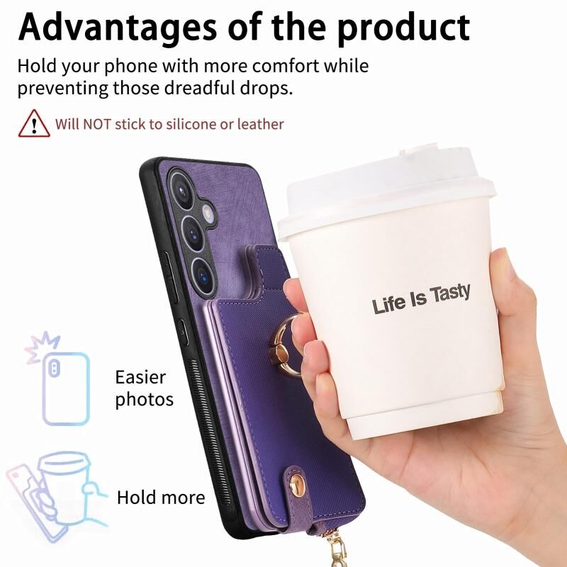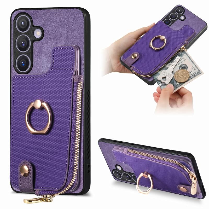 Για Samsung Galaxy S24 5G Cross Δερμάτινο δαχτυλίδι κάθετη φερμουάρ πορτοφόλι πίσω τηλέφωνο υπόθεση (μωβ)