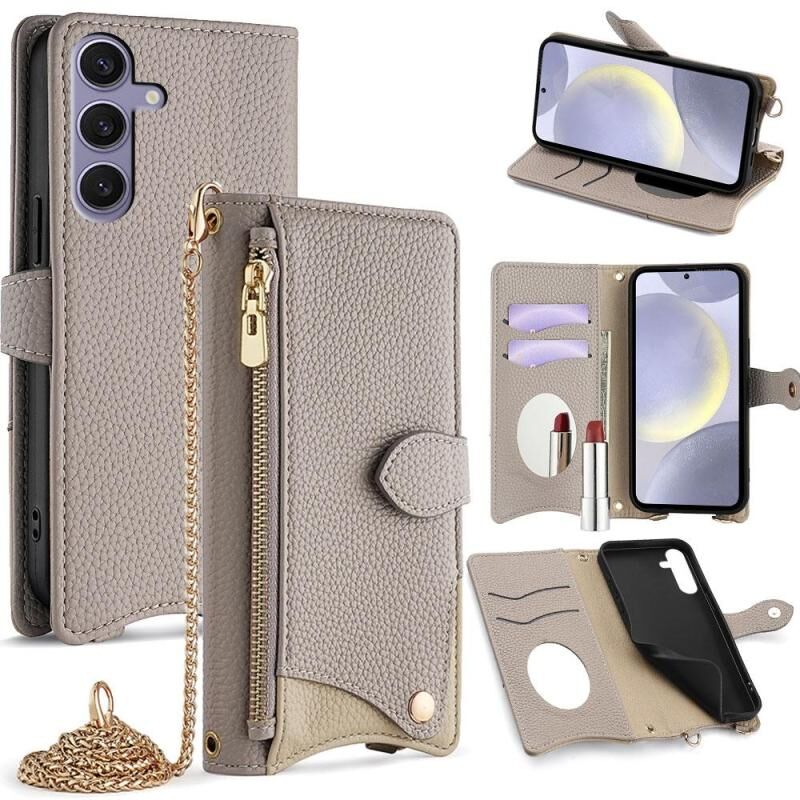 Για Samsung Galaxy S24+ 5G Crossbody αλυσίδα Fishtail Litchi δερμάτινη θήκη τηλεφώνου (γκρι)