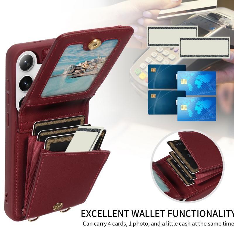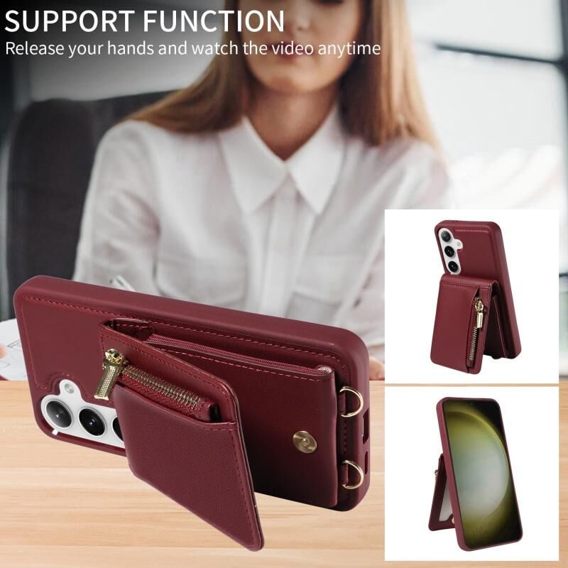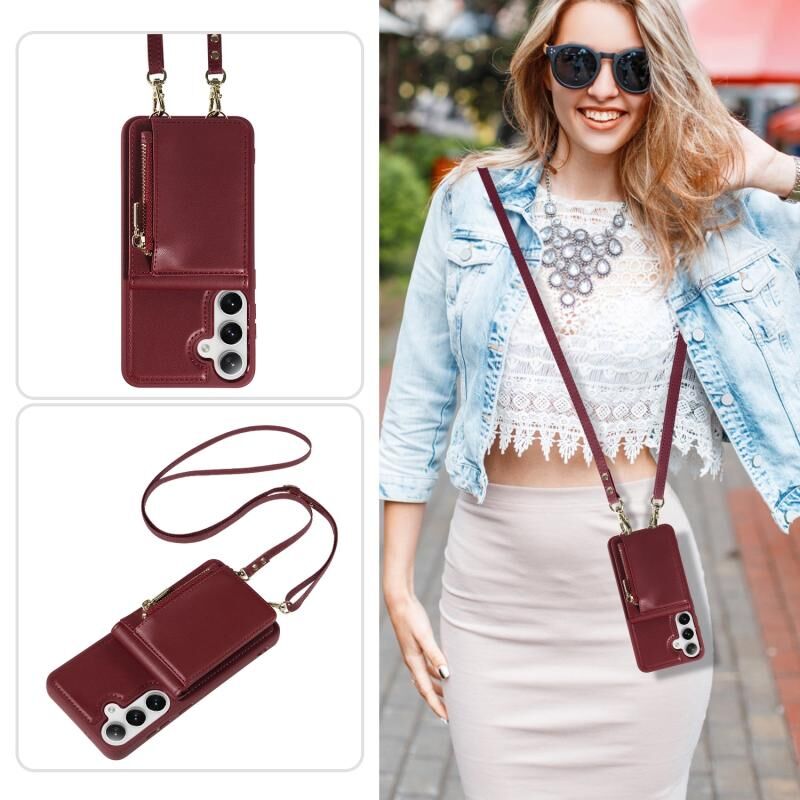 Για Samsung Galaxy S24+ 5G Crossbody Lanyard φερμουάρ πορτοφόλι δερμάτινη θήκη τηλεφώνου (κόκκινο κρασί)