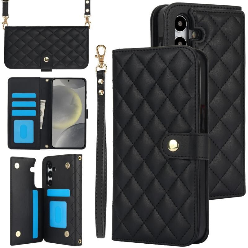 Για Samsung Galaxy S24 5G Crossbody Πολυλειτουργική θήκη τηλεφώνου από δέρμα (Μαύρο)