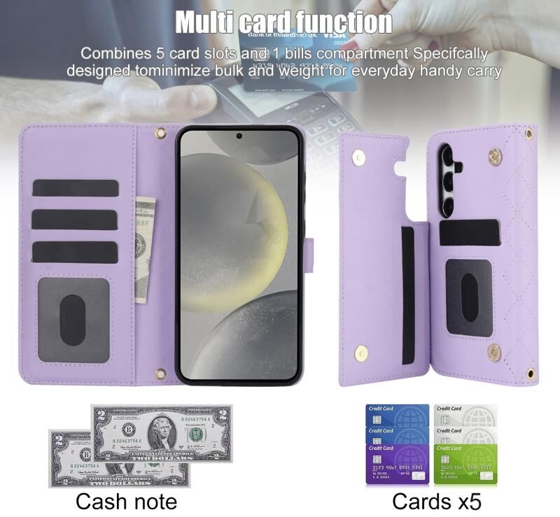 Για Samsung Galaxy S24+ 5G Crossbody Πολυλειτουργική θήκη τηλεφώνου από δέρμα (μωβ)
