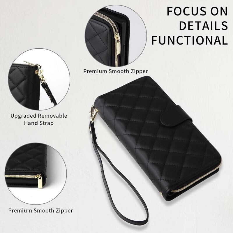 Θήκη τηλεφώνου Samsung Galaxy S24+ 5G από δέρμα με λουρί, σταυρωτό φερμουάρ, αγκράφα πύργου (Κρασί)