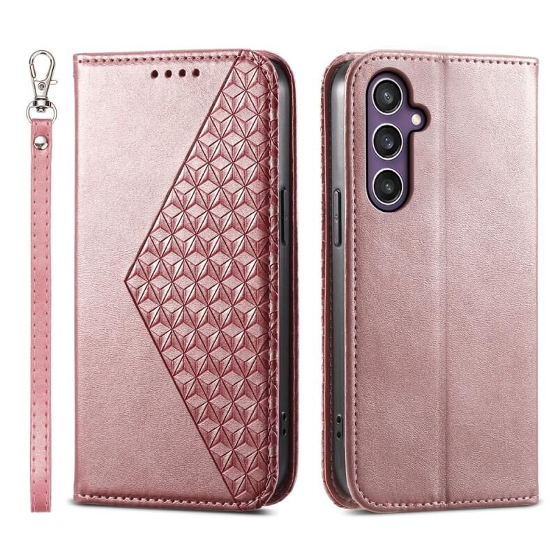 Για Samsung Galaxy S24+ 5G Cubic Grid Calf Texture μαγνητική δερμάτινη θήκη τηλεφώνου (ροζ χρυσό)