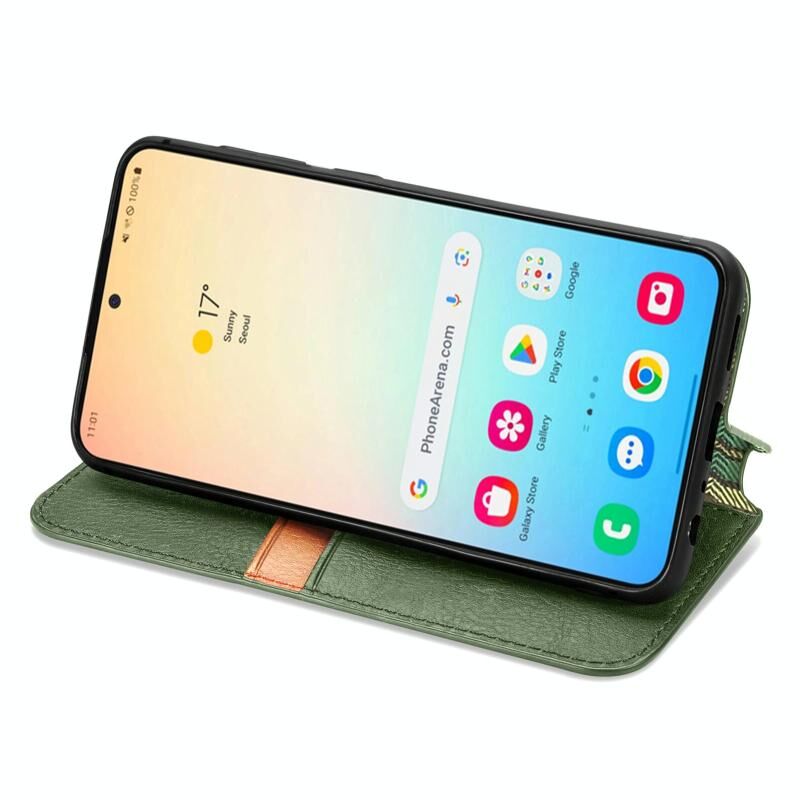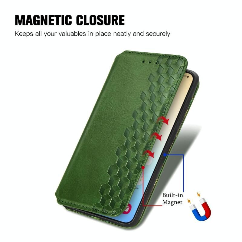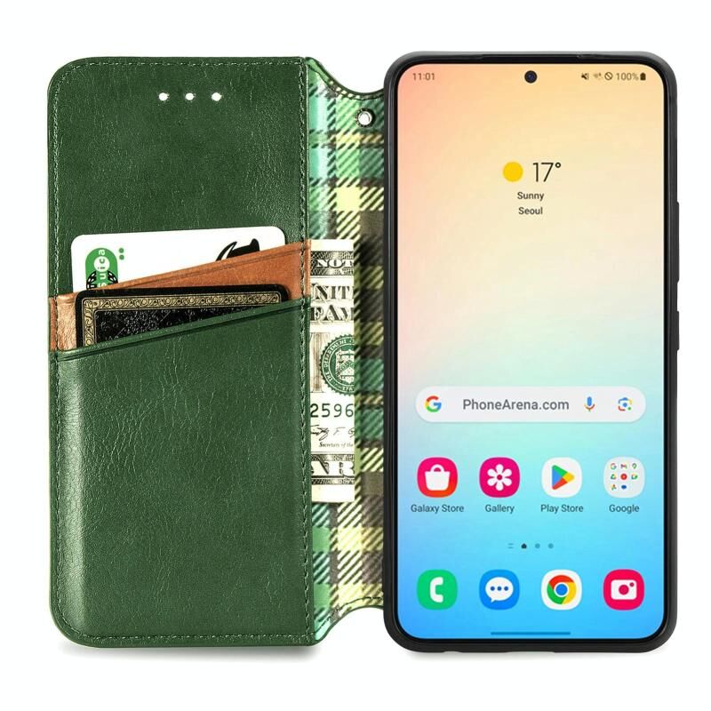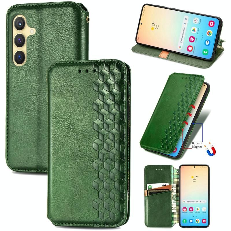 Για Samsung Galaxy S24 5G κυβικό πλέγμα πρεσαριστή μαγνητική δερμάτινη θήκη τηλεφώνου (πράσινο)