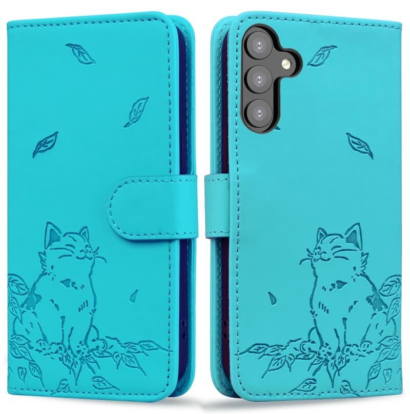 Θήκη τηλεφώνου δερμάτινη ανάγλυφη με χαριτωμένη γάτα για Samsung Galaxy S24+ 5G (Πράσινη)