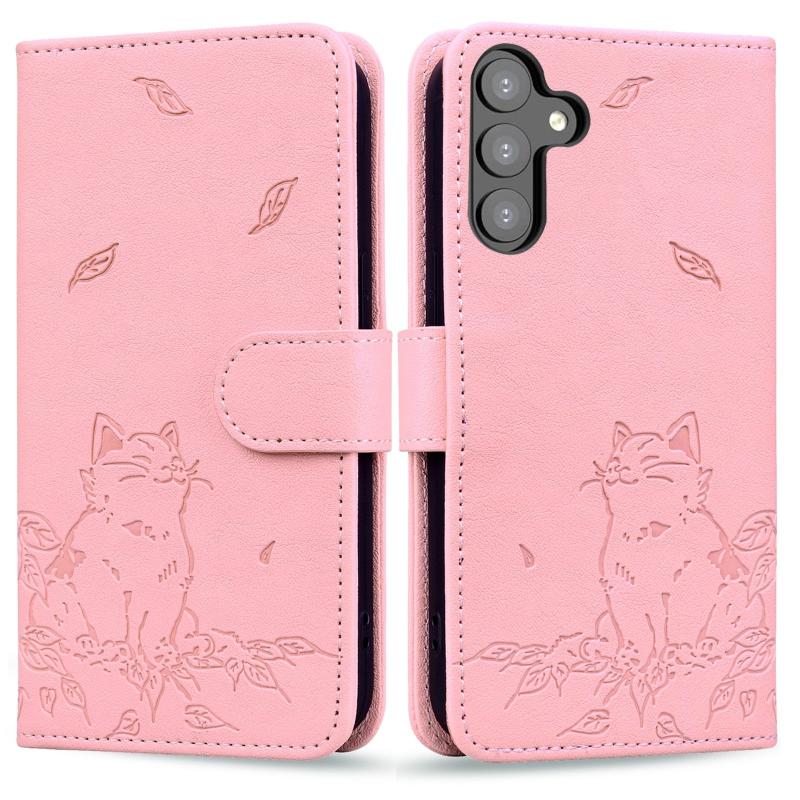 For Samsung Galaxy S24 5G Cute Cat Embossed Leather Phone Case(Pink)