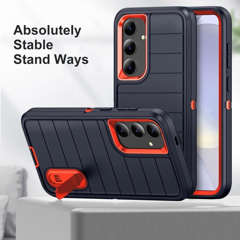 Για Samsung Galaxy S24 5G Defender Gen2 ανθεκτική θήκη τηλεφώνου PC + σιλικόνης με θήκη (σκούρο μπλε + πορτοκαλί)