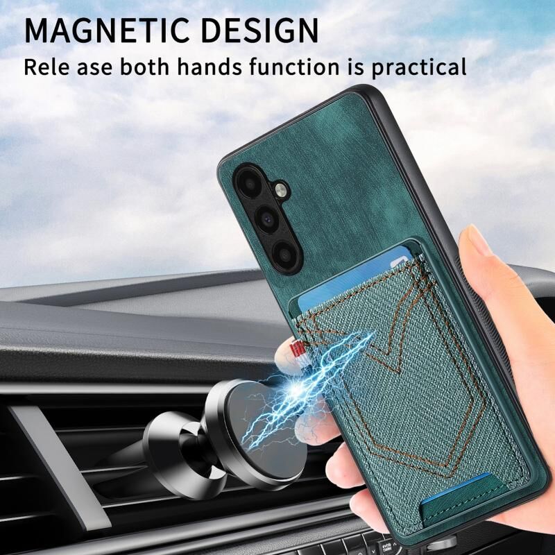 Για Samsung Galaxy S24+ 5G Denim Texture δέρμα δέρμα τηλέφωνο υπόθεση με υποδοχή για κάρτες (πράσινο)