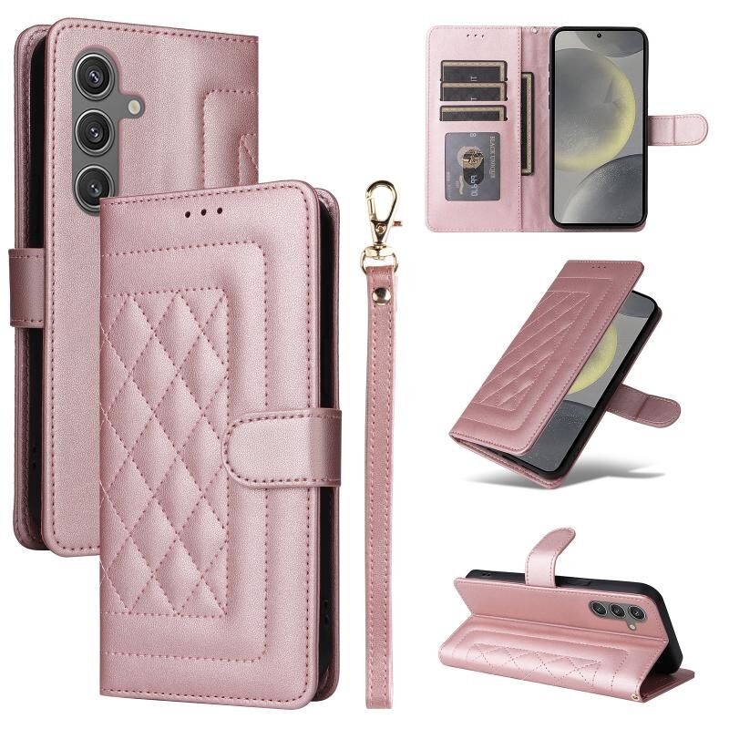 Για Samsung Galaxy S24 5G Diamond Lattice δέρμα Flip υπόθεση τηλεφώνου (Rose Gold)