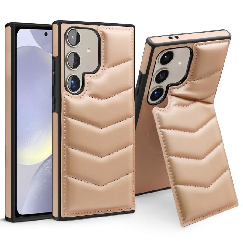 For Samsung Galaxy S24 5G Down Jacket Card Bag Holder MagSafe Phone Case(Rose Gold)