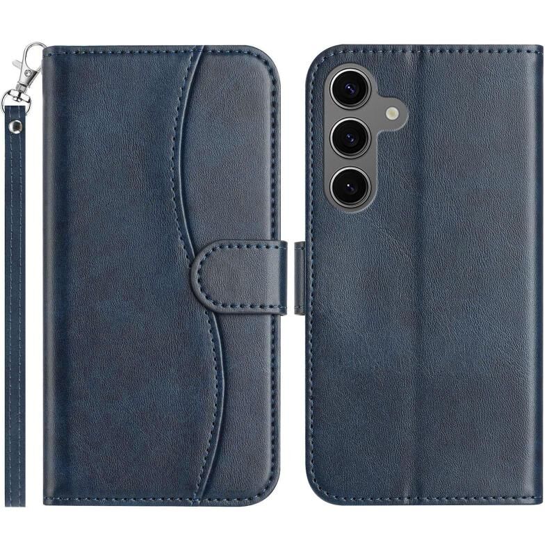 For Samsung Galaxy S24 5G Dual-Folded S-shape Leather Phone Case(Navy Blue)