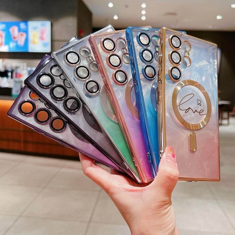 Θήκη τηλεφώνου Samsung Galaxy S24+ 5G, Διπλή Αγάπη, Διαβαθμισμένη Λάμψη Φτερού, MagSafe, TPU (Μαύρο)