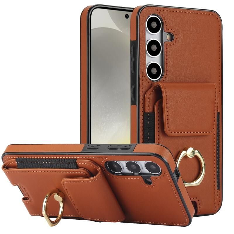 Για Samsung Galaxy S24 5G Ελαστική κάρτα τσάντα δαχτυλίδι τσάντα κάτοχος υπόθεση τηλεφώνου (καφέ)