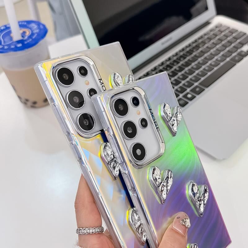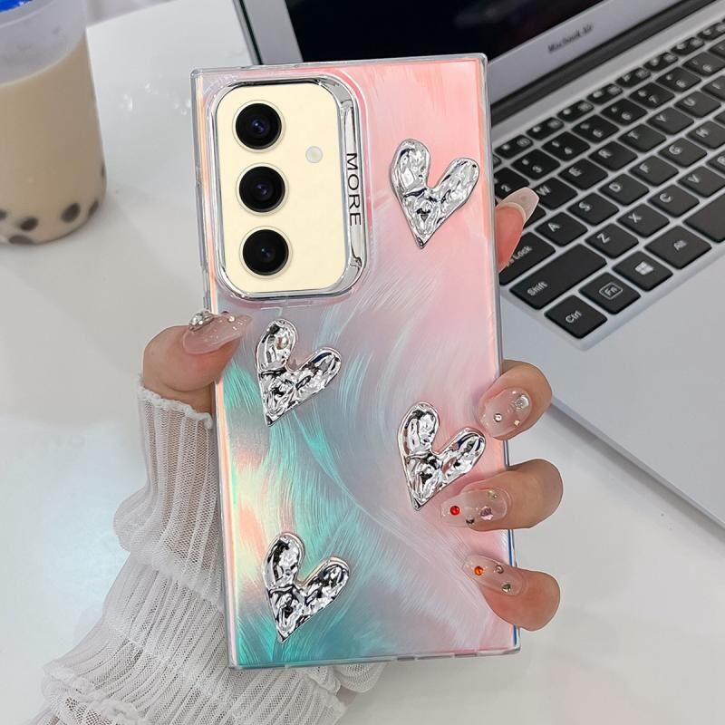 Θήκη τηλεφώνου TPU με λέιζερ και υφή 4 καρδιών για Samsung Galaxy S24+ 5G, με ηλεκτρολυτική επίστρωση (νήμα φτερού)