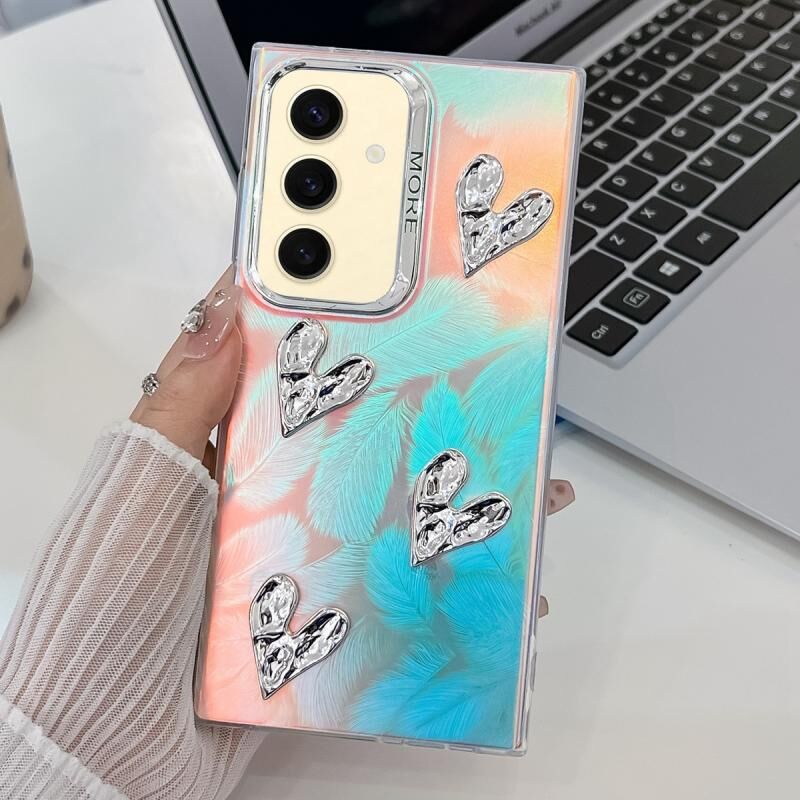 Θήκη τηλεφώνου TPU με λέιζερ και υφή 4 καρδιών, επιμετάλλωση για Samsung Galaxy S24 5G (Φτερά)