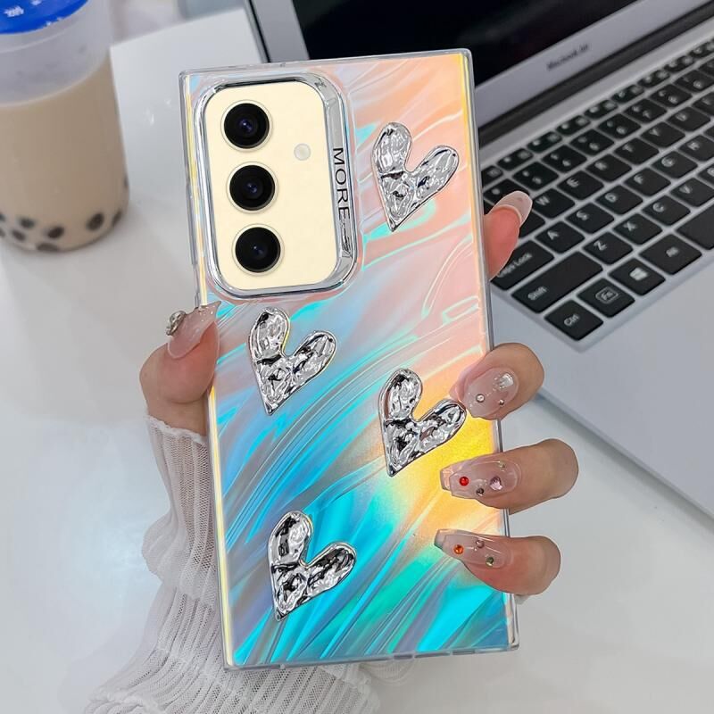 Θήκη κινητού τηλεφώνου TPU με λέιζερ και υφή 4 καρδιών για Samsung Galaxy S24 5G, με ηλεκτρολυτική επίστρωση (Ροή νερού)
