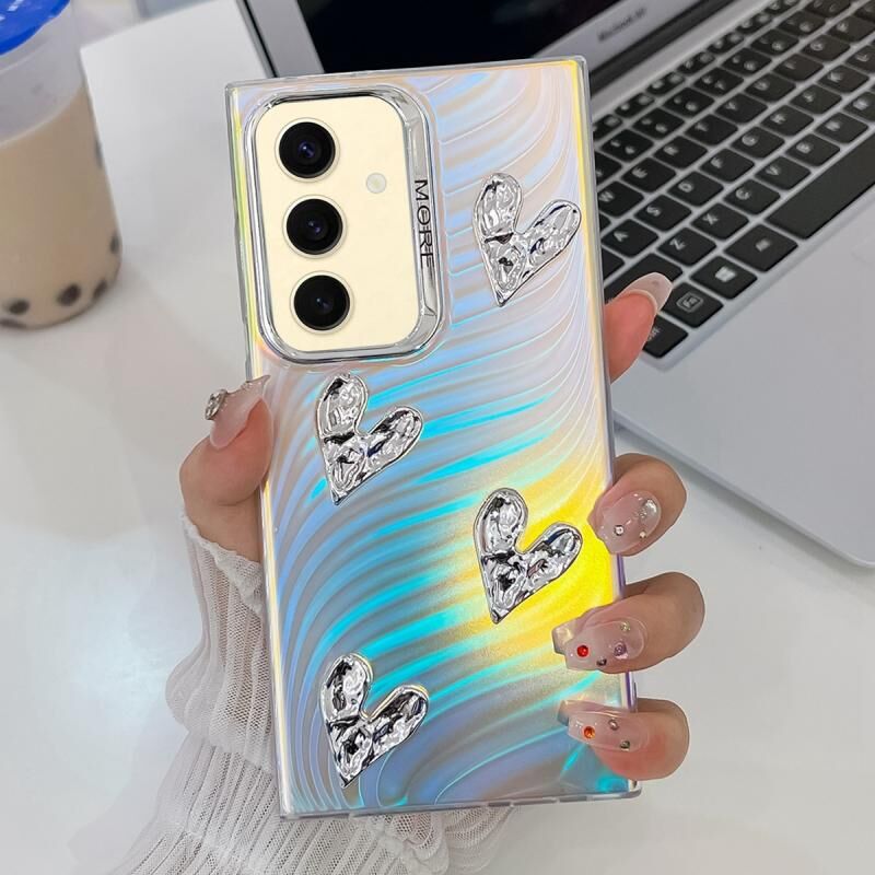 Θήκη τηλεφώνου TPU με λέιζερ και υφή 4 καρδιών για Samsung Galaxy S24 5G, με ηλεκτρολυτική επίστρωση (Κύματα νερού)
