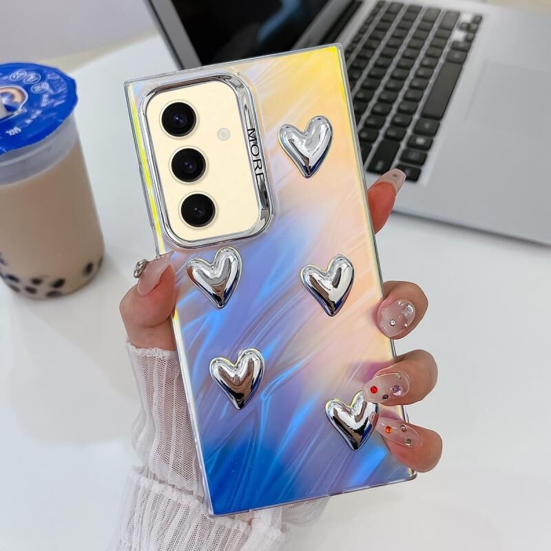 Θήκη τηλεφώνου TPU με λέιζερ 5 καρδιών και ηλεκτρολυτική επίστρωση για Samsung Galaxy S24 5G (νήμα φτερού)