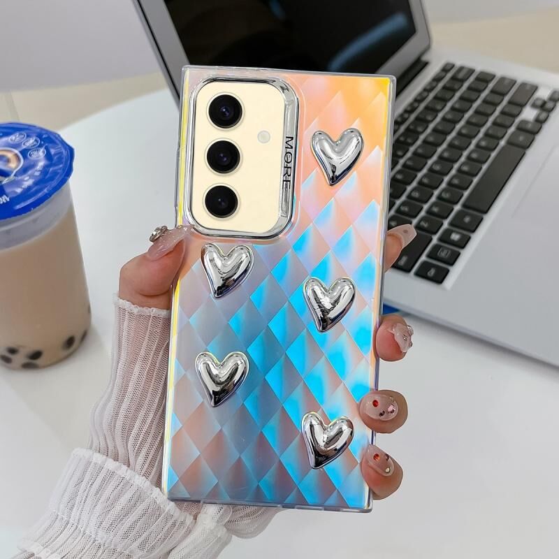Θήκη τηλεφώνου TPU με ηλεκτρολυτική επίστρωση και υφή λέιζερ 5-καρδιών για Samsung Galaxy S24 5G (Καρό)