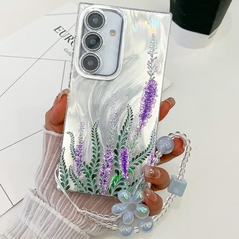 Θήκη κινητού τηλεφώνου Samsung Galaxy S24 5G TPU με σχέδιο electroplating λουλουδιών και φυτών (Λεβάντα FL3)