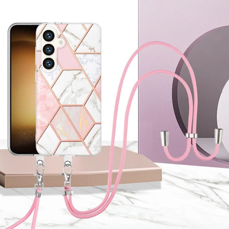 Θήκη τηλεφώνου Samsung Galaxy S24 5G με επιμετάλλωση IMD, συνδυασμό χρωμάτων, μαρμάρινη TPU και λουρί (Μπλε)