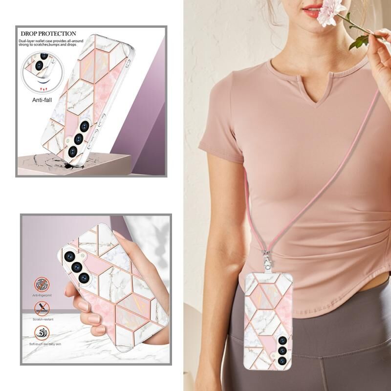 Θήκη τηλεφώνου Samsung Galaxy S24+ 5G με ηλεκτρολυτική επιμετάλλωση IMD, συνδυασμό χρωμάτων, μαρμάρινη TPU με κορδόνι (Μπλε)