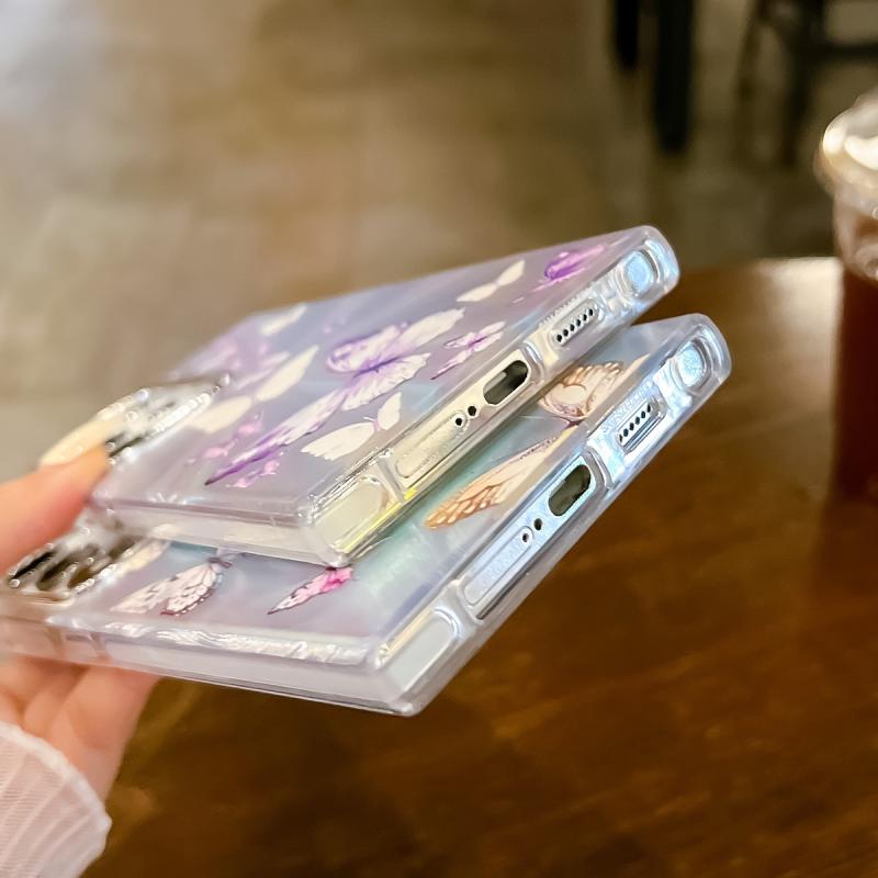 For Samsung Galaxy S24 5G Electroplating Laser Butterfly Phone Case(White Purple Butterflies AB6)