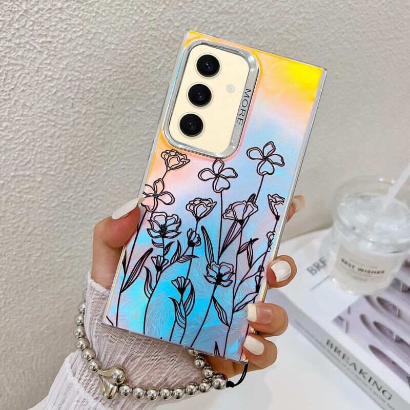 Θήκη τηλεφώνου για Samsung Galaxy S24+ 5G με ηλεκτρολυτική επίστρωση, λουλούδια με λέιζερ και λουρί καρπού (Σχέδιο Λουλουδιών AH3)