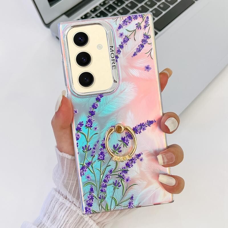 Θήκη κινητού τηλεφώνου Samsung Galaxy S24+ 5G TPU με Ηλεκτρολυτική επίστρωση, Λουλούδι με Λέιζερ και Δακτύλιο Στήριξης (Λεβάντα AH14)