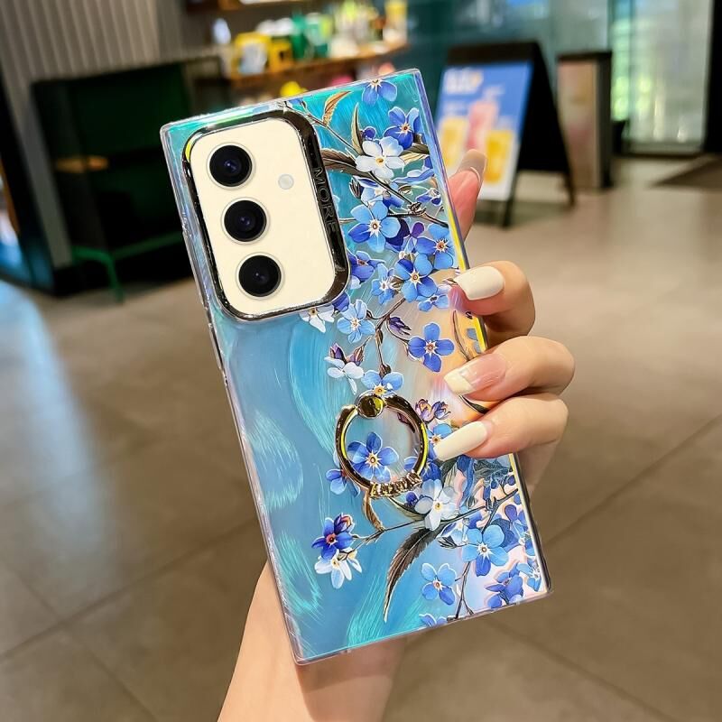 Θήκη κινητού τηλεφώνου Samsung Galaxy S24+ 5G TPU με δακτύλιο στήριξης, επίστρωση με ηλεκτρολυτική επίστρωση και λουλούδι λέιζερ (Myosotis AH2)
