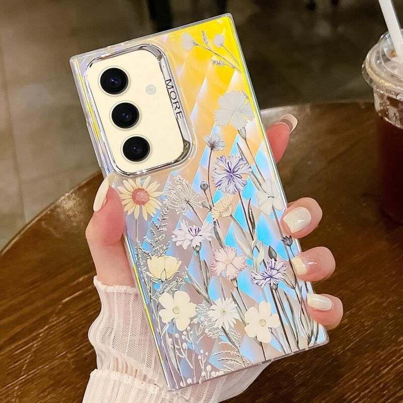 Θήκη τηλεφώνου TPU με ηλεκτρολυτική επίστρωση και υφή λουλουδιού λέιζερ για Samsung Galaxy S24 5G (Χρυσάνθεμο AH5)