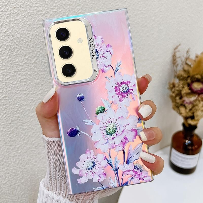 Θήκη τηλεφώνου TPU με ηλεκτρολυτική επίστρωση και υφή λουλουδιού λέιζερ για Samsung Galaxy S24+ 5G (Zinnia AH9)